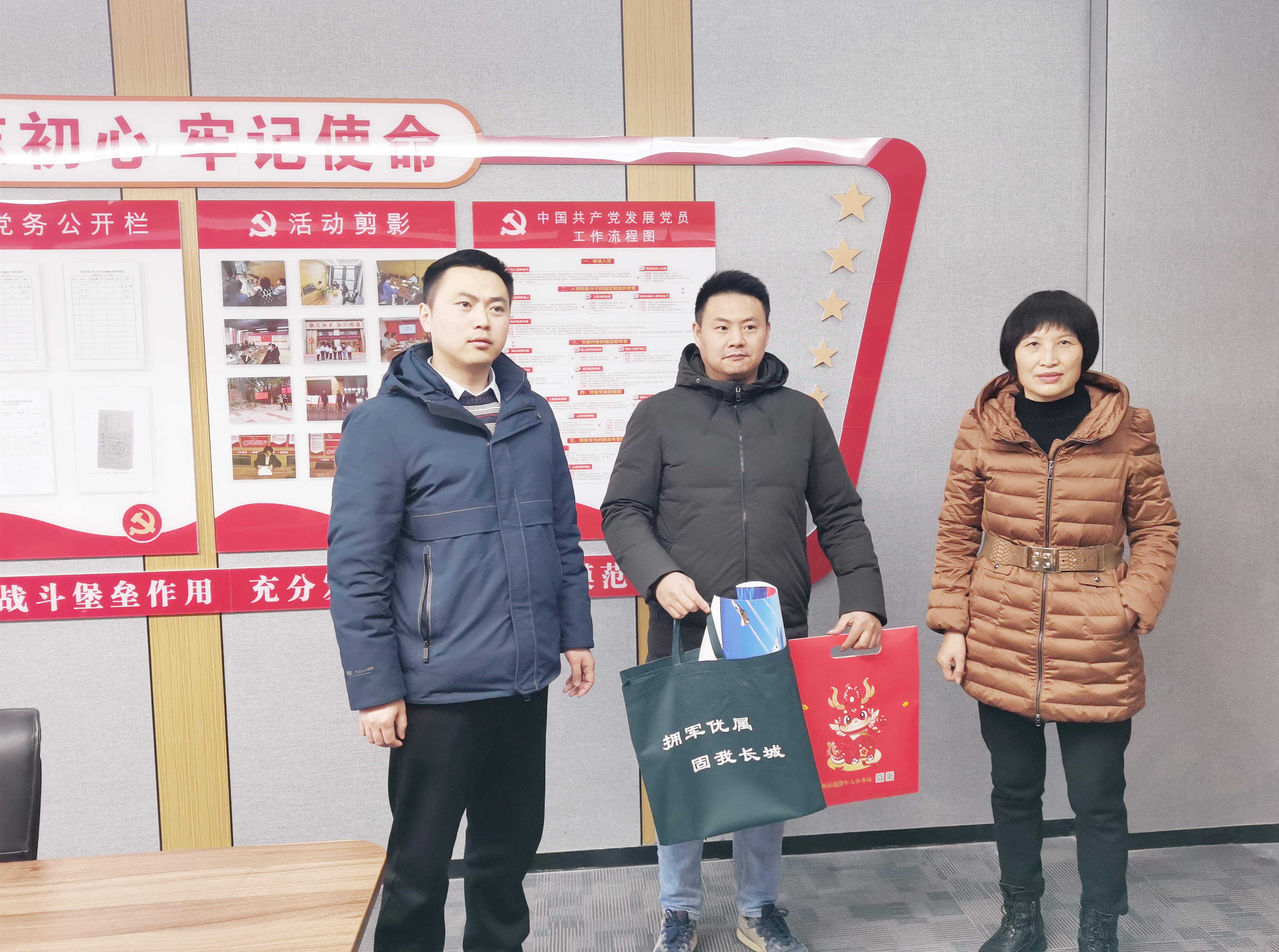在中華傳統(tǒng)節(jié)日春節(jié)來臨之際,為了表達(dá)對退役軍人的關(guān)心關(guān)愛,近日,市擔(dān)保集團(tuán)黨委委員、副總經(jīng)理何宇帶隊(duì)走訪慰問集團(tuán)及子公司退役軍人,為退役軍人送上祝福并送去慰問品。集團(tuán)子公司董事長許如花隨同慰問。