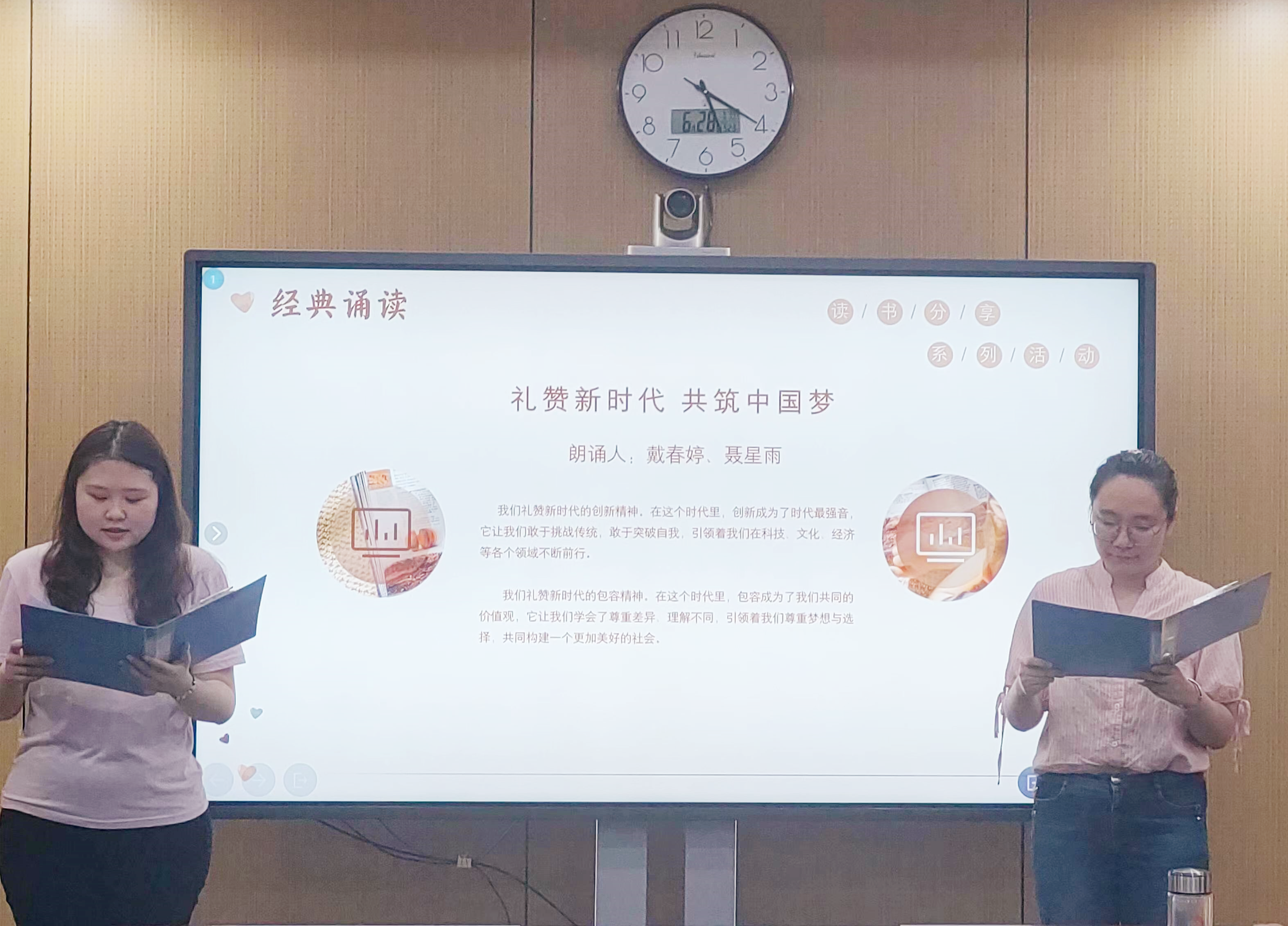 在第三環(huán)節(jié)的“禮贊新時代·書香潤人心”經(jīng)典誦讀活動中,兩組參與人用真摯的情感、激昂的語調(diào)分別朗誦了《朱元璋奉天討元北伐檄文》《禮贊新時代 共筑中國夢》兩篇文章,朗誦作品既有中華優(yōu)秀傳統(tǒng)文化中經(jīng)典篇目的再現(xiàn),也有新時代作品的創(chuàng)新演繹??犊ぐ旱睦收b贏得了現(xiàn)場觀眾的陣陣掌聲,也讓我們更加深刻地感受到傳統(tǒng)文化的魅力以及新時代的力量。