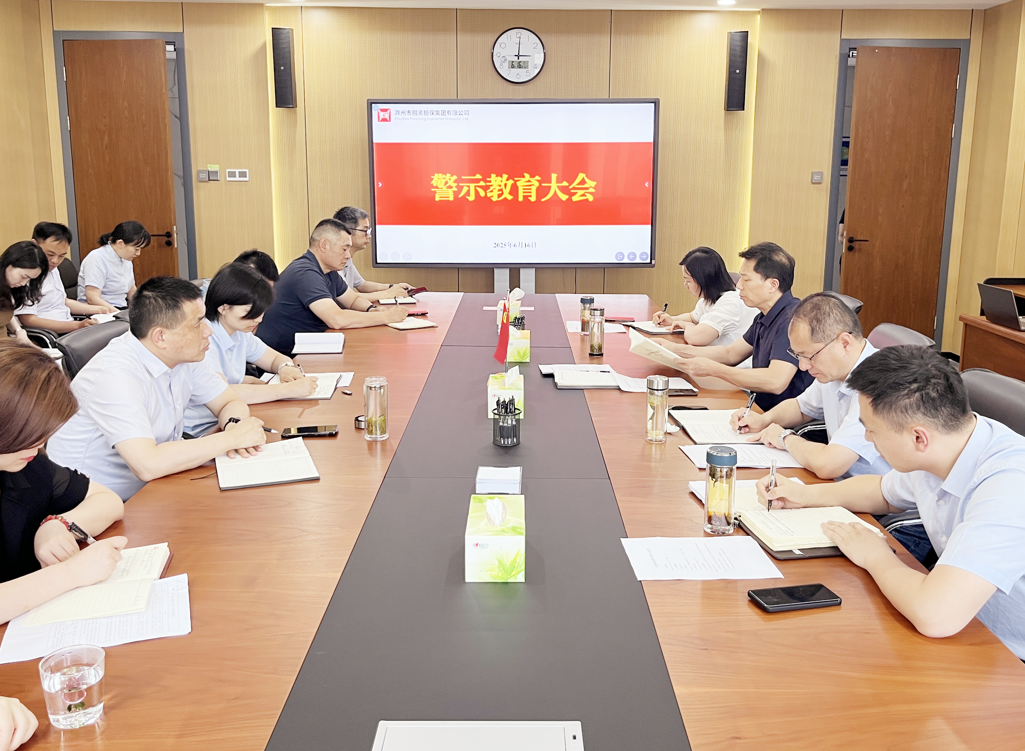 6月16日,市擔保集團召開警示教育大會,黨委書記高文進主持并講話,集團及子公司全體干部職工參加會議。