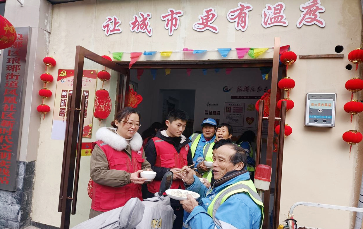 為讓環(huán)衛(wèi)工人感受到節(jié)日祝福和社會關(guān)愛,市擔(dān)保集團(tuán)志愿者來到鳳凰社區(qū)開展“大年初一送水餃 溫情暖人心”活動?;顒又?,志愿者們向環(huán)衛(wèi)工人表達(dá)溫馨的新春祝福,并送上熱氣騰騰的餃子,為新春佳節(jié)增添了濃濃的年味。