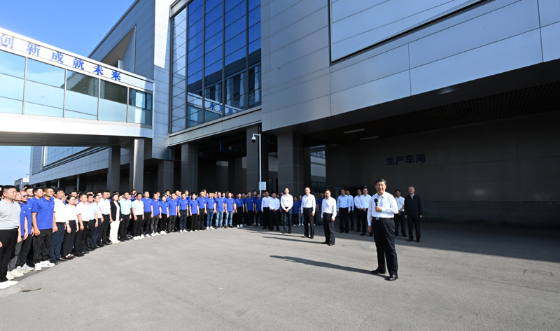 在車間外廣場(chǎng)上,習(xí)近平同企業(yè)員工們親切交流。習(xí)近平強(qiáng)調(diào),我國(guó)是制造大國(guó),要努力提高自主創(chuàng)新能力,加快向制造強(qiáng)國(guó)轉(zhuǎn)變。中國(guó)要強(qiáng)大,各領(lǐng)域各方面都要強(qiáng)起來(lái)。全面建設(shè)社會(huì)主義現(xiàn)代化國(guó)家,實(shí)現(xiàn)中華民族偉大復(fù)興,前途是光明的,道路是曲折的,還會(huì)面臨許多激流險(xiǎn)灘,要勇于迎接各種風(fēng)險(xiǎn)挑戰(zhàn)。天上不會(huì)掉餡餅,一切成就都要通過(guò)我們共同拼搏來(lái)取得。大家都是“80后”、“90后”,正當(dāng)其時(shí),要有事業(yè)心、責(zé)任感,努力奮斗,到本世紀(jì)中葉全面建成社會(huì)主義現(xiàn)代化強(qiáng)國(guó)之時(shí),大家一定會(huì)為“強(qiáng)國(guó)圓夢(mèng)、功成有我”而感到自豪。