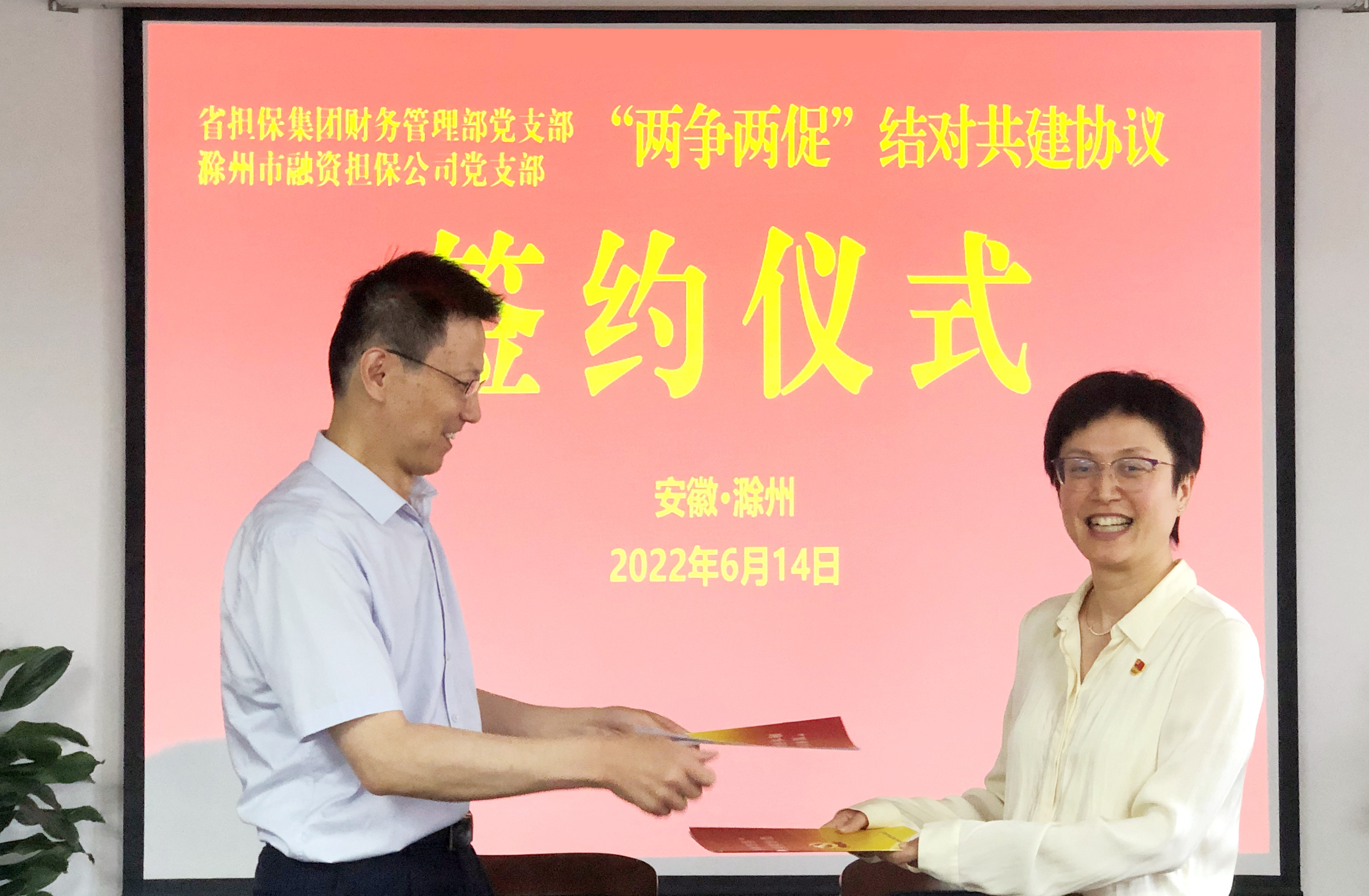 為鞏固拓展黨史學(xué)習(xí)教育成果,深入推進“我為群眾辦實事”實踐活動,加強擔(dān)保體系建設(shè),6月14日,省擔(dān)保集團財務(wù)管理部黨支部書記王晶晶一行,前往我單位開展“兩爭兩促”結(jié)對共建活動。我單位黨支部書記錢朝郡及部分黨員、入黨積極分子參加。