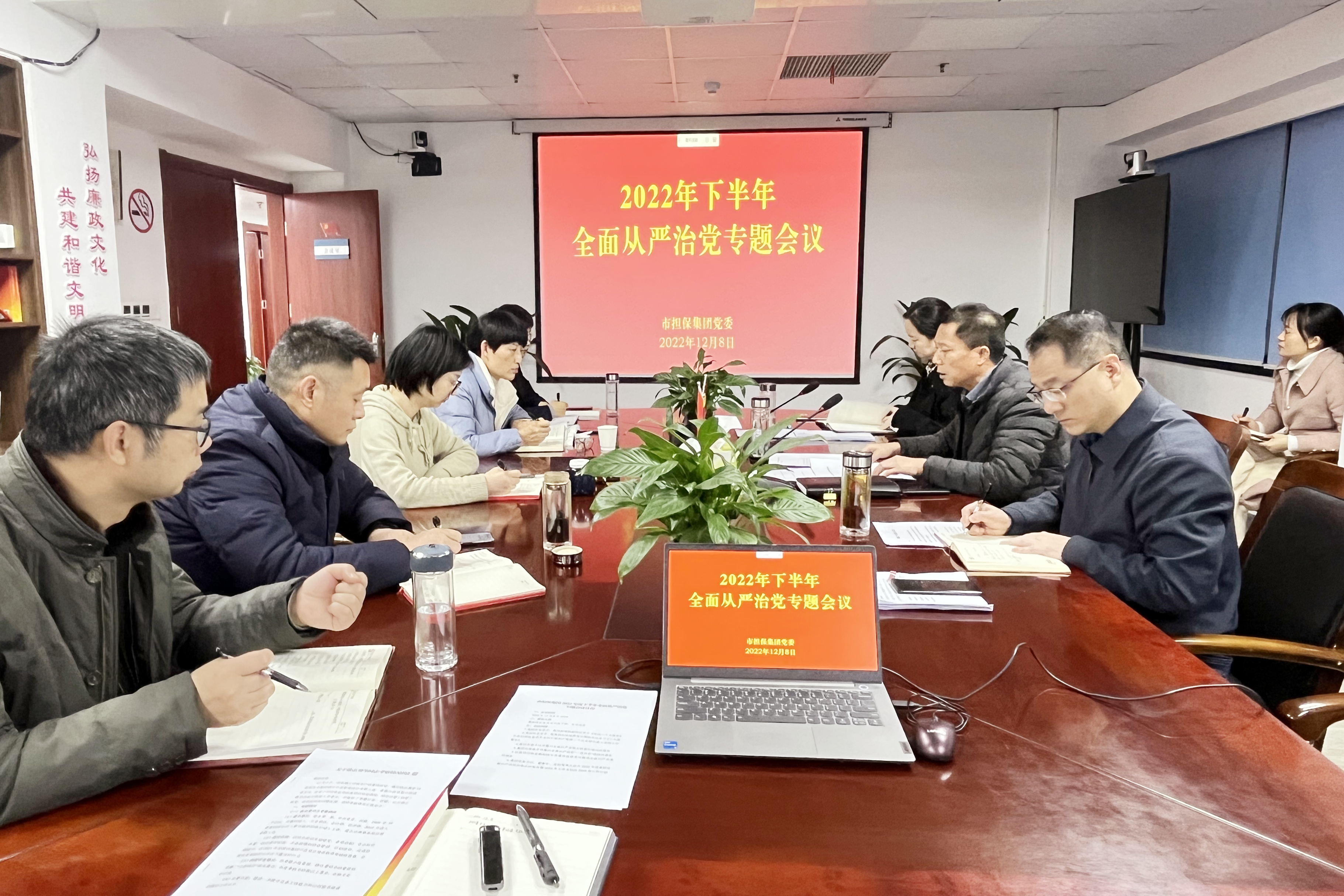 為切實履行黨委全面從嚴治黨主體責(zé)任,12月8日下午,市擔(dān)保集團黨委書記高文進主持召開2022年下半年全面從嚴治黨專題會議,全體黨委委員參加會議,中層及以上干部、全體黨員列席會議。