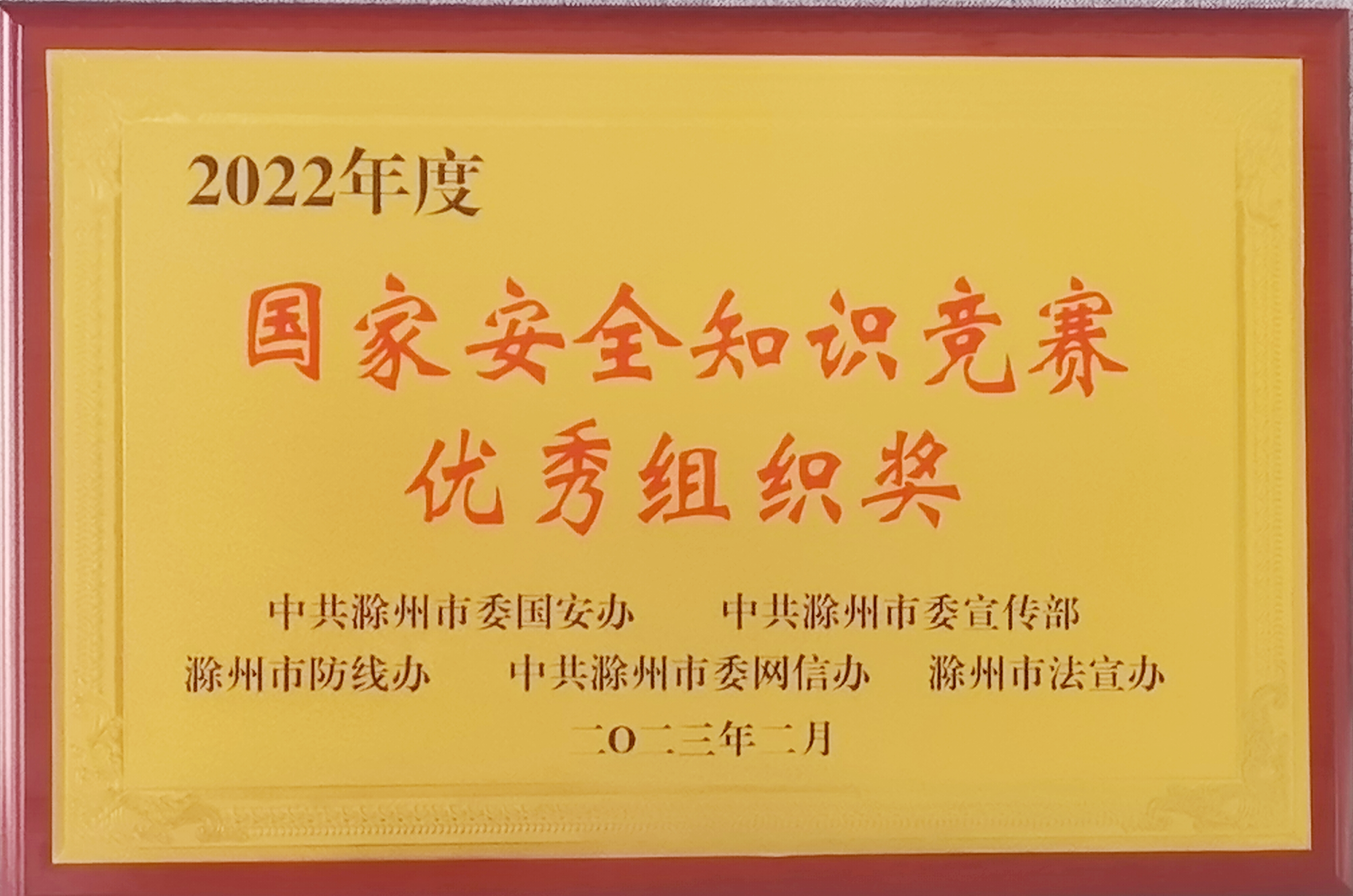 市擔(dān)保集團(tuán)獲評(píng)滁州市國家安全知識(shí)競(jìng)賽優(yōu)秀組織單位