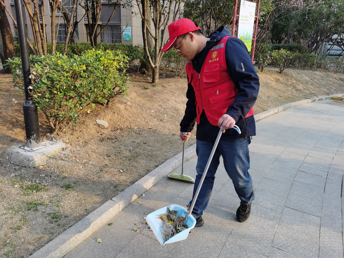 黨員志愿者在都市名苑小區(qū)幫助清掃衛(wèi)生